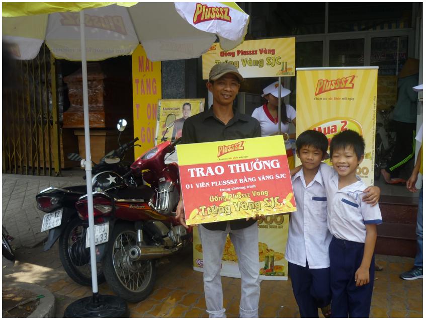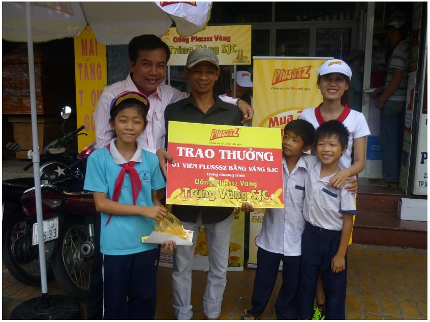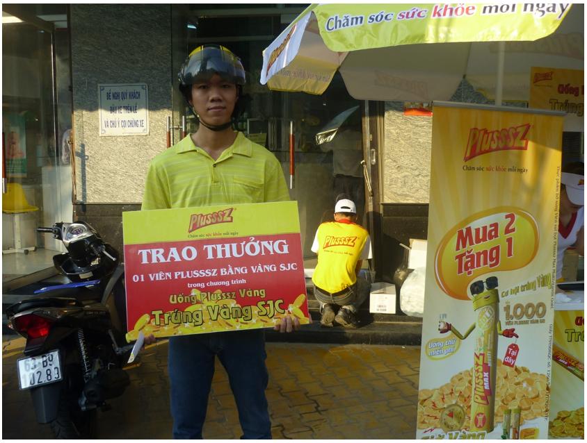 Ngày 09/04/2014, anh Nguyễn Quốc TRung (0121 350 5055) đã là khách hàng may mắn thứ 2 trúng thưởng 01 viên Plusssz bằng vàng khi tham gia chương trình uống thử tại nhà thuốc Kim Phụng - Tiền Giang. Đại diện nhãn hàng Plusssz đã trao thưởng 01 viên Plusssz bằng vàng cho anh Nguyễn Quốc Trung và 20 tube Plusssz Gold cho nhà thuốc Kim Phụng.