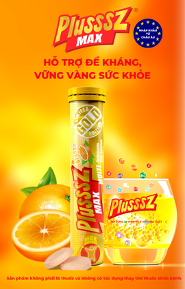 Viên sủi Plusssz Max Multivitamin vị Cam không đường bổ sung vitamin và khoáng chất thiết yếu cho cơ thể hỗ trợ tăng cường sức đề kháng, tăng cường sức khỏe.